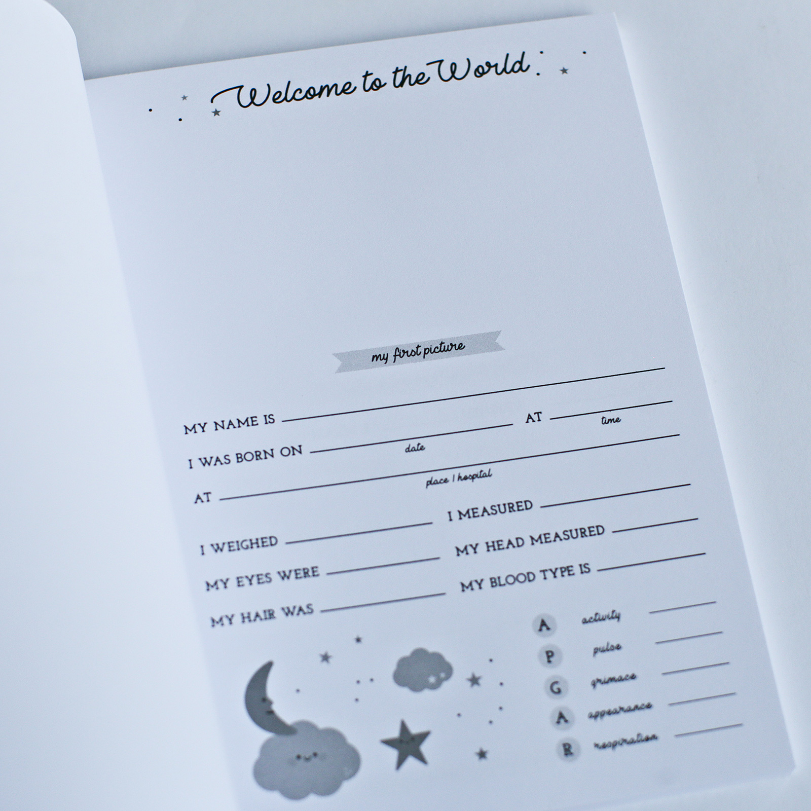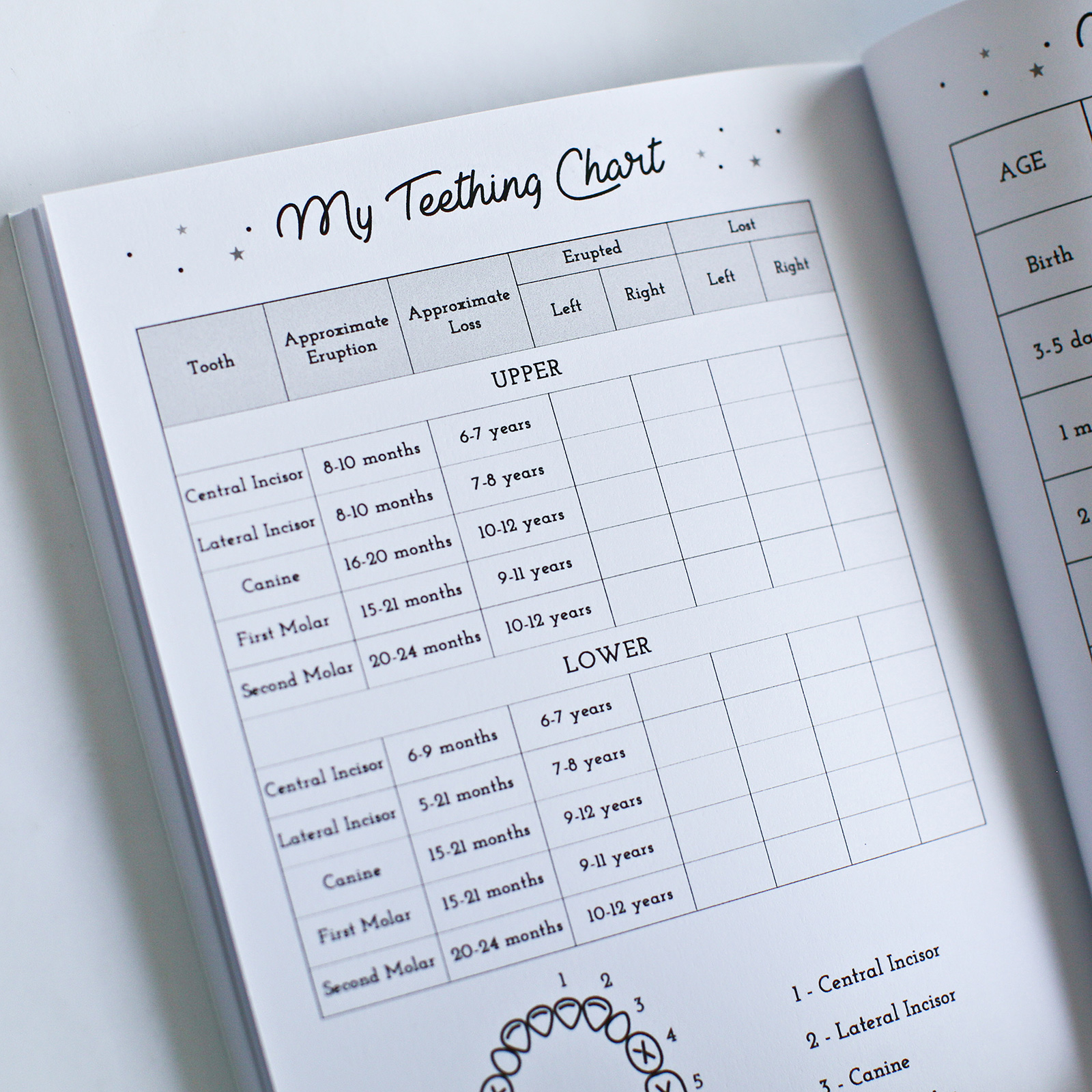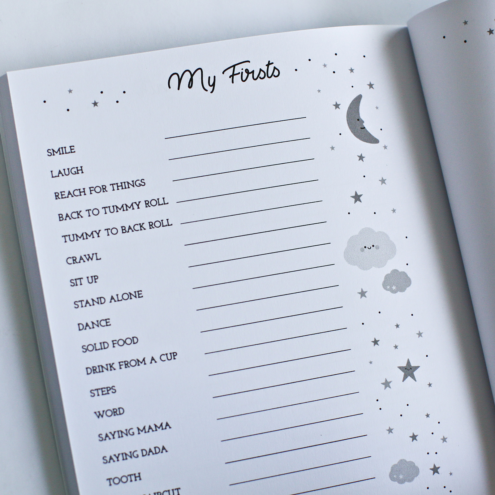 Track your little one’s growth from newborn to toddler with this Baby Book. Includes monthly checklists of baby’s milestones, a teething chart, growth chart and immunization records.