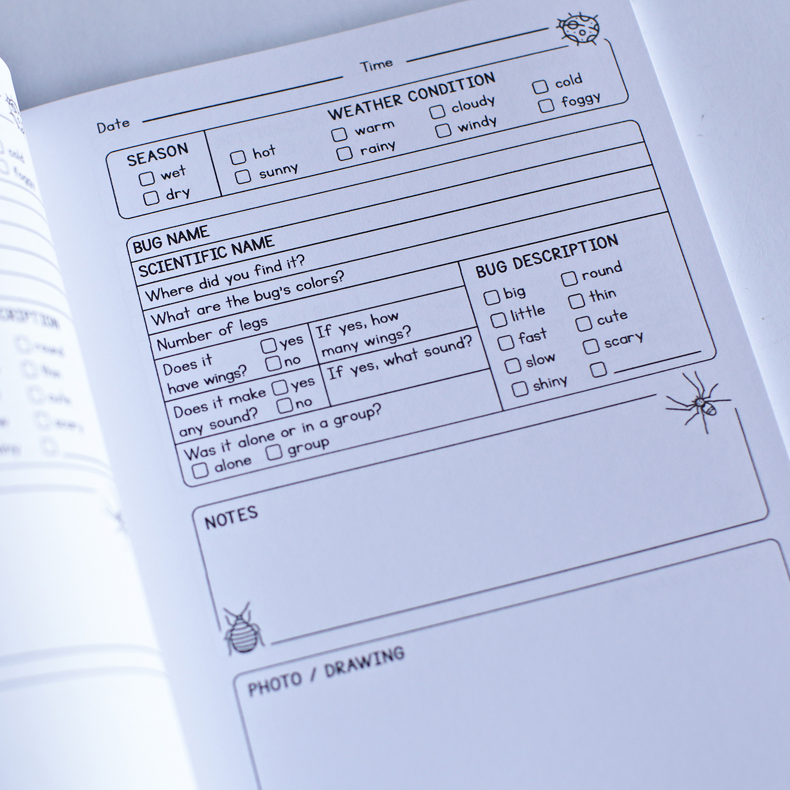 Let the kids learn about the natural world in a fun way. This Bug Identification Log Book is a good educational tool for kids to record details and observations about the creepy-crawlies they discover around the house. It has pertinent bug-hunting information such as habitat, weather conditions and location. A word search and some pages to color are also included, to keep the little ones entertained and not bug you.