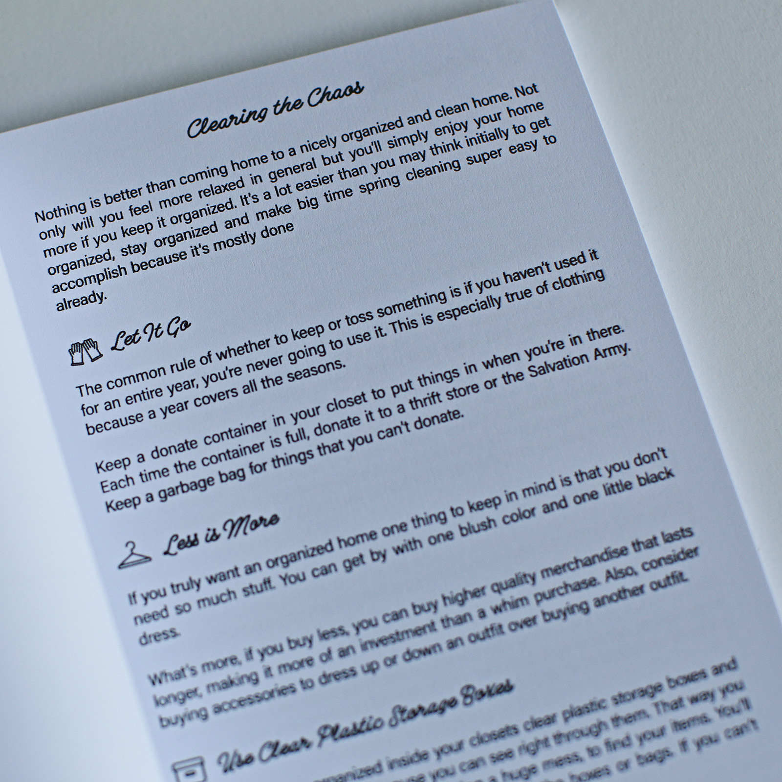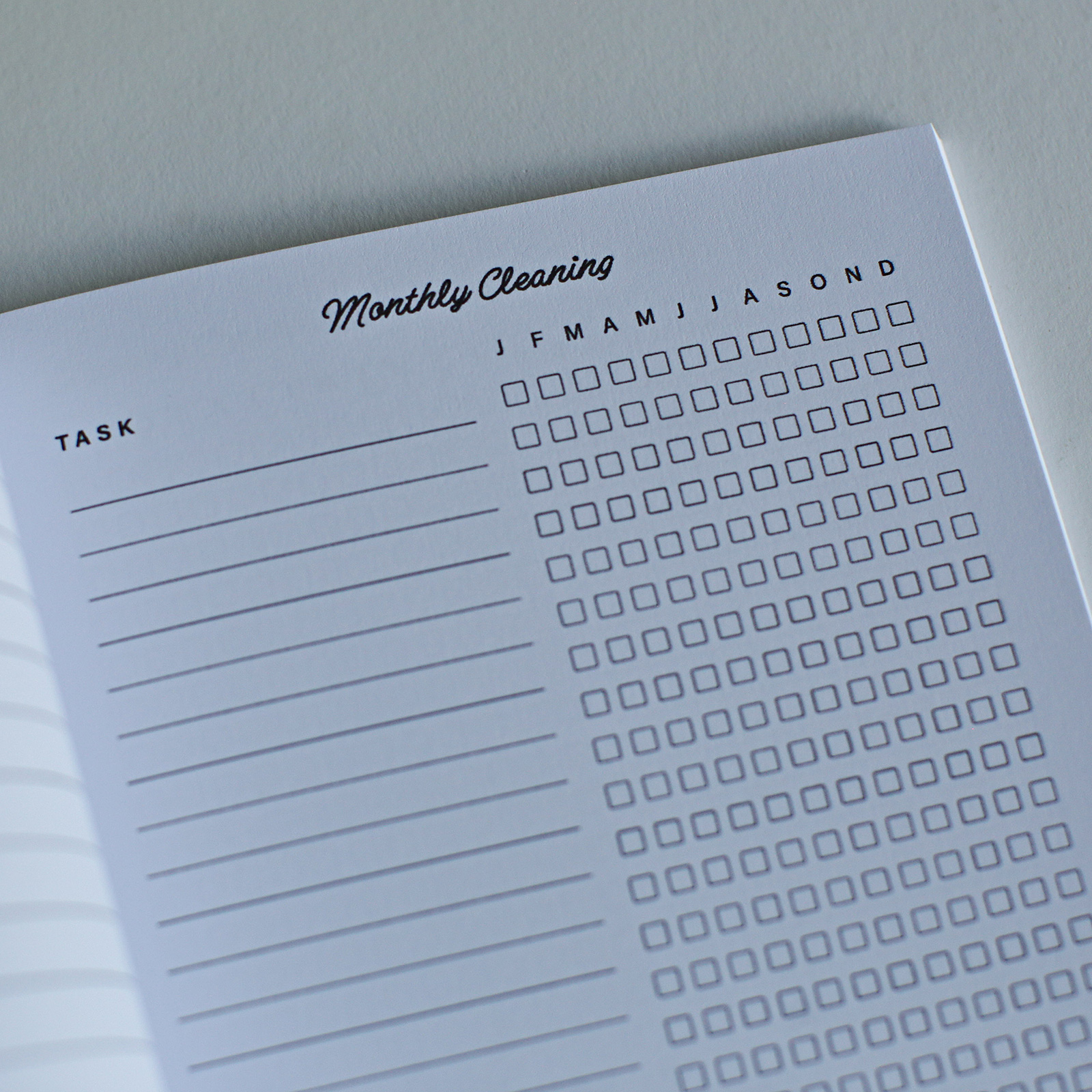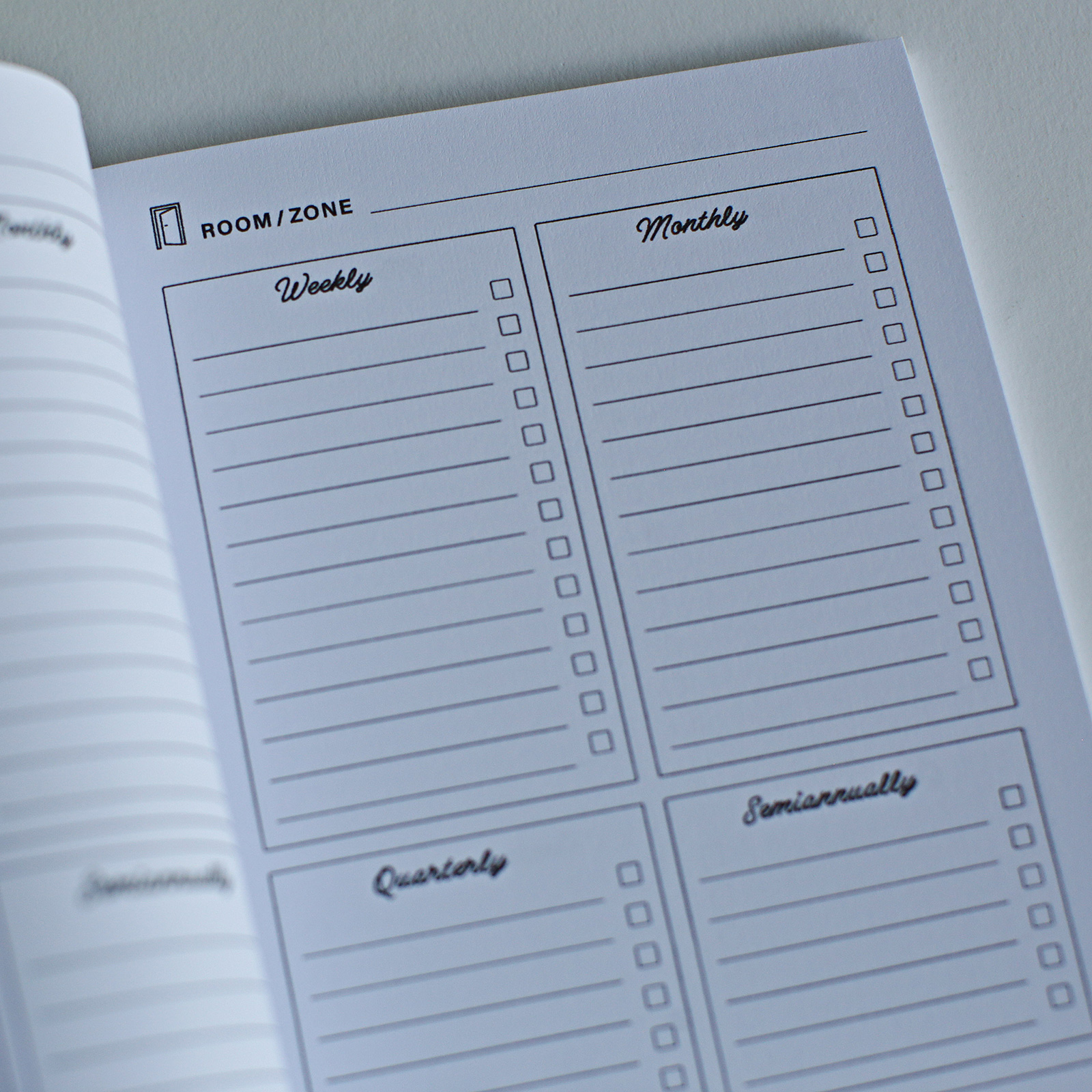 This Cleaning Journal has guides, checklists and tips to help you stay on top of your organizing game. Use it to keep track of your daily, weekly, monthly, and yearly cleaning activities. Keep your space clean, organized, and clutter-free with this journal by your side.