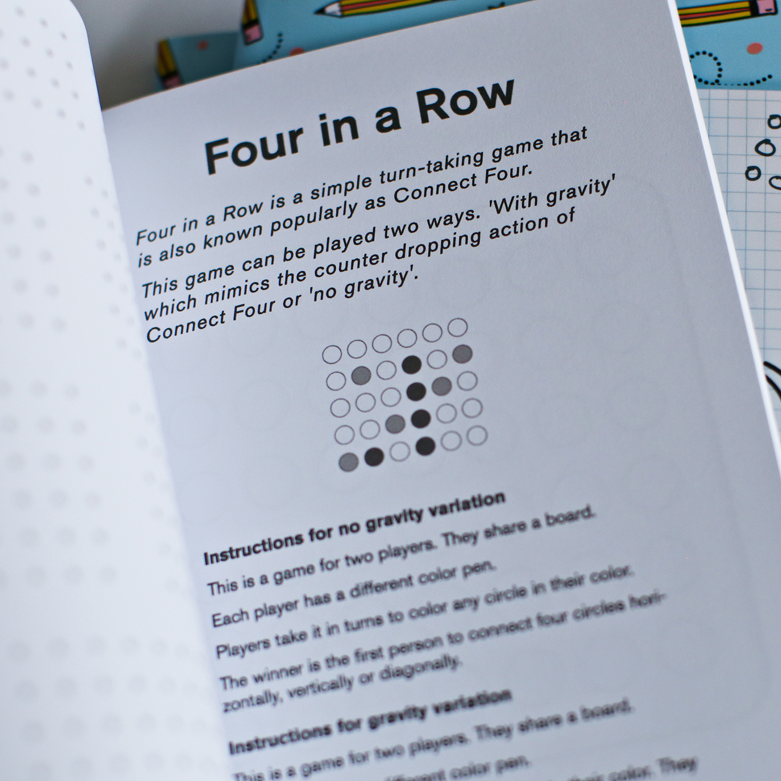 Keep kids entertained for hours without the use of devices. Includes 5 games — tic tac toe, dots & boxes, four in a row, 3D tic tac toe, hexagon game