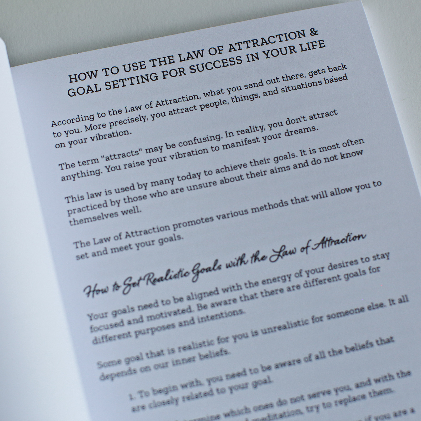 This Law of Attraction Journal helps you learn the art of manifestation, expanding your awareness on how to attract abundance. Tap into the Universe’s infinite resources, bring forth opportunities for success, improve relationships and even bring more money into your life. It will guide you how to be grateful, align your thoughts with your desires, create a vision board, and write down affirmations to achieve your goals.