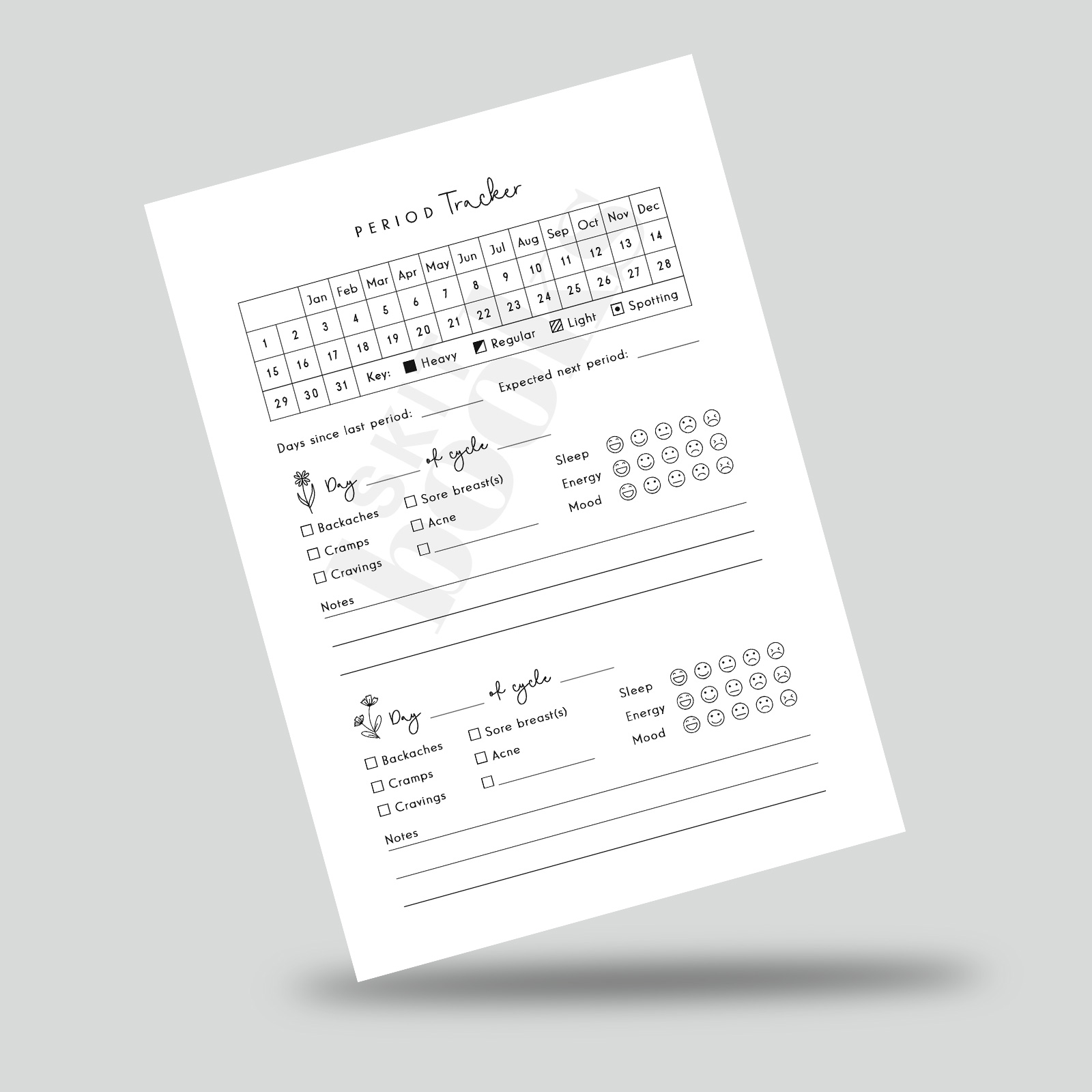 This period tracker is a downloadable 2-page PDF file that you can print in A5 size.