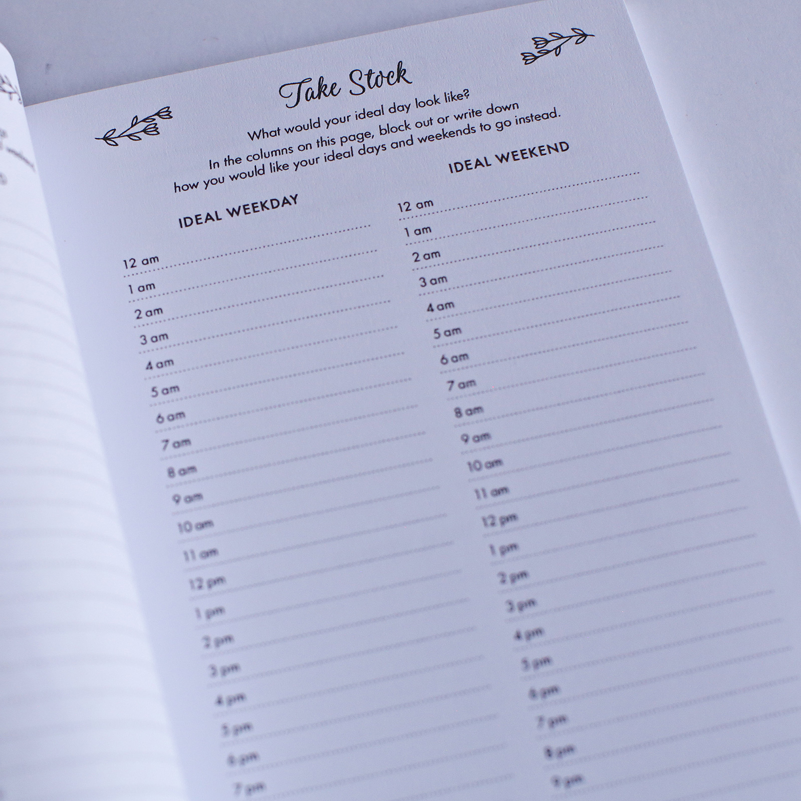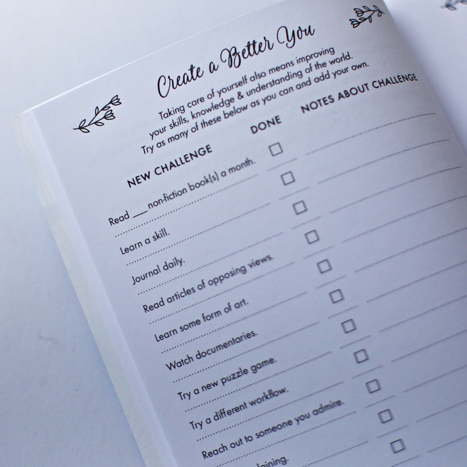 This Self Care Planner helps you find pockets of time during the day for self-care. It has challenges for eating right and cultivating relationships as well as sleep and exercise trackers. There is a section for you to list down what you are grateful for each day and also a monthly planner to help you manage your time and improve productivity.