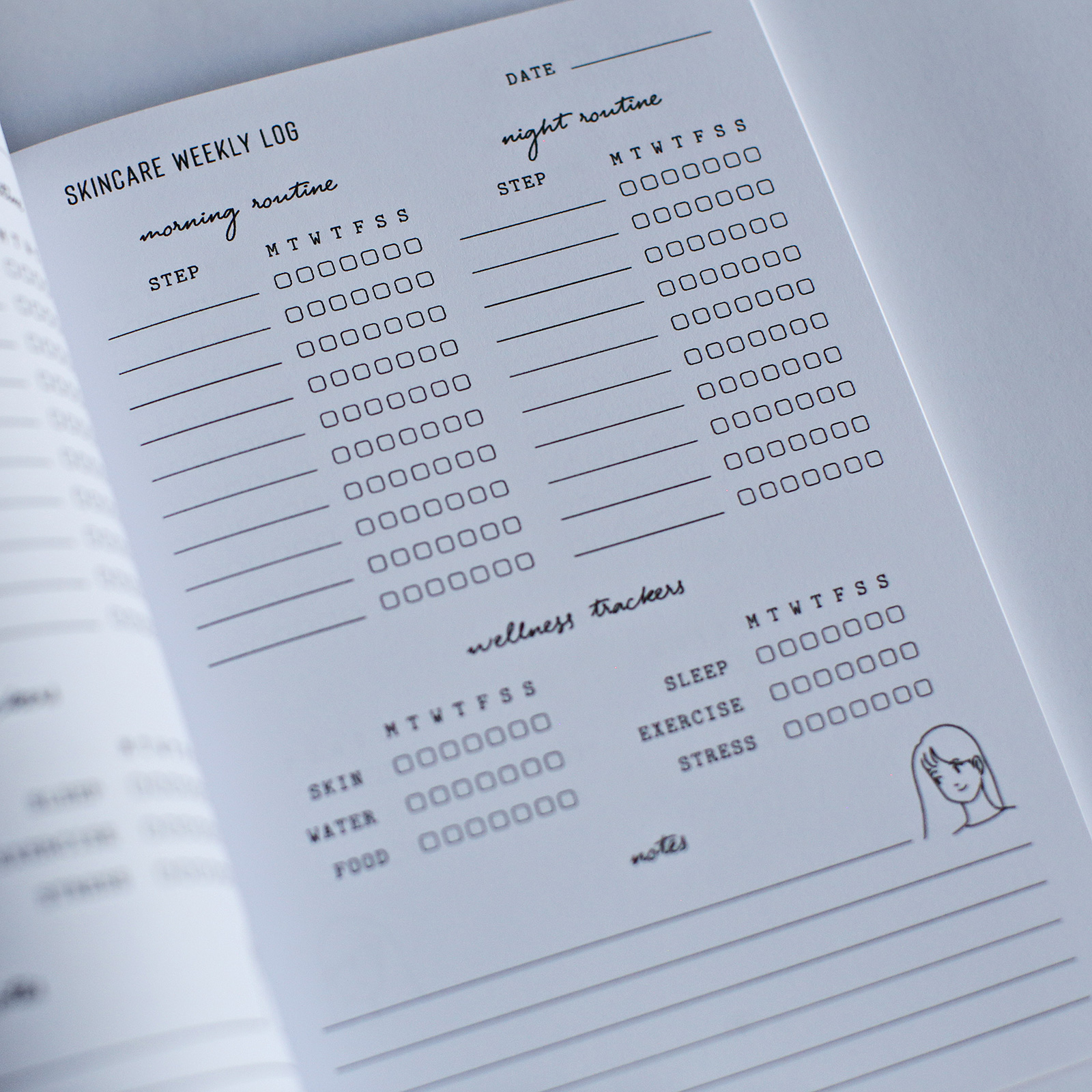 We all want that healthy, glowing skin but to achieve that, we must find the perfect balance between genetics, hormones, lifestyle and product use. And this Skin Care Journal can help you with that by tracking your morning and night time skin care routines and also take note of food and water intake, sleep, stress and movement.