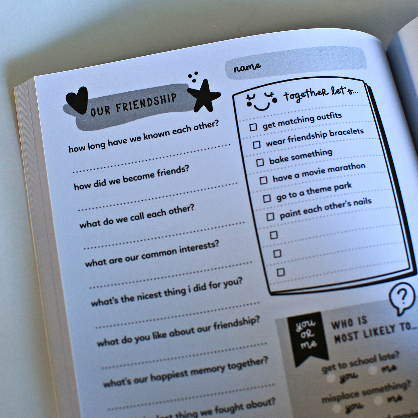 This Slam Book has various sections. The Basic Info is good for up to 18 friends, the Likes, Favorites, Ifs and Would You Rather sections are for 10 friends and the Friendship and Candid and Personal sections are for 8 friends.