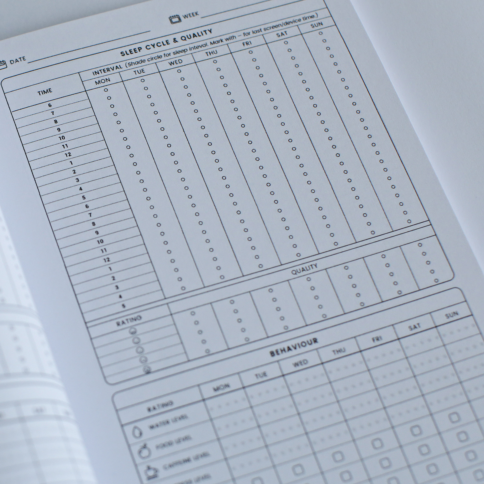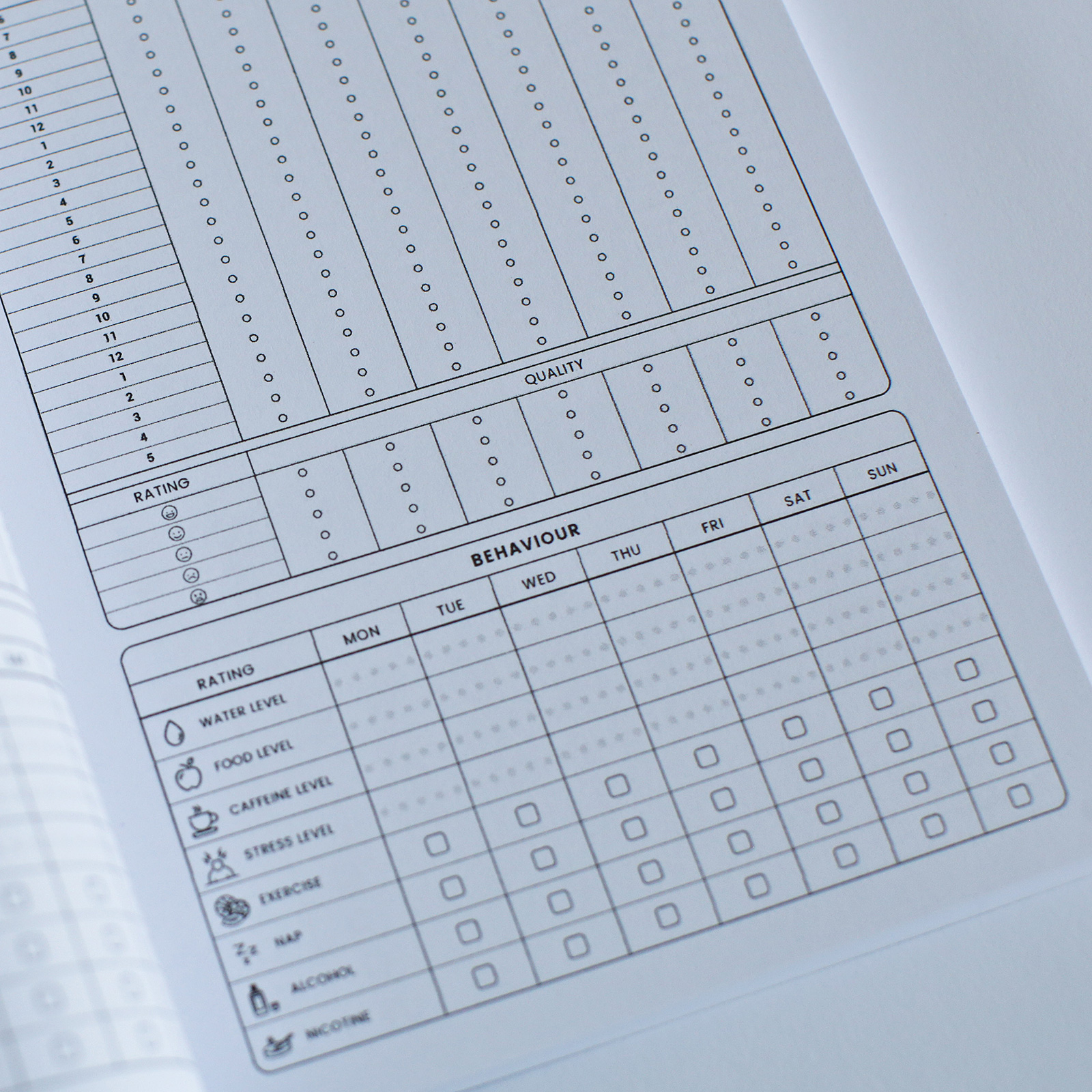 Our Sleep Diary will help you track how many hours you sleep per day and how you feel when you wake up. Log your daily behavior that may affect sleep such as food and water intake, work stress and caffeine consumption.You can also log if you exercised, took a nap, had alcohol or a smoke.