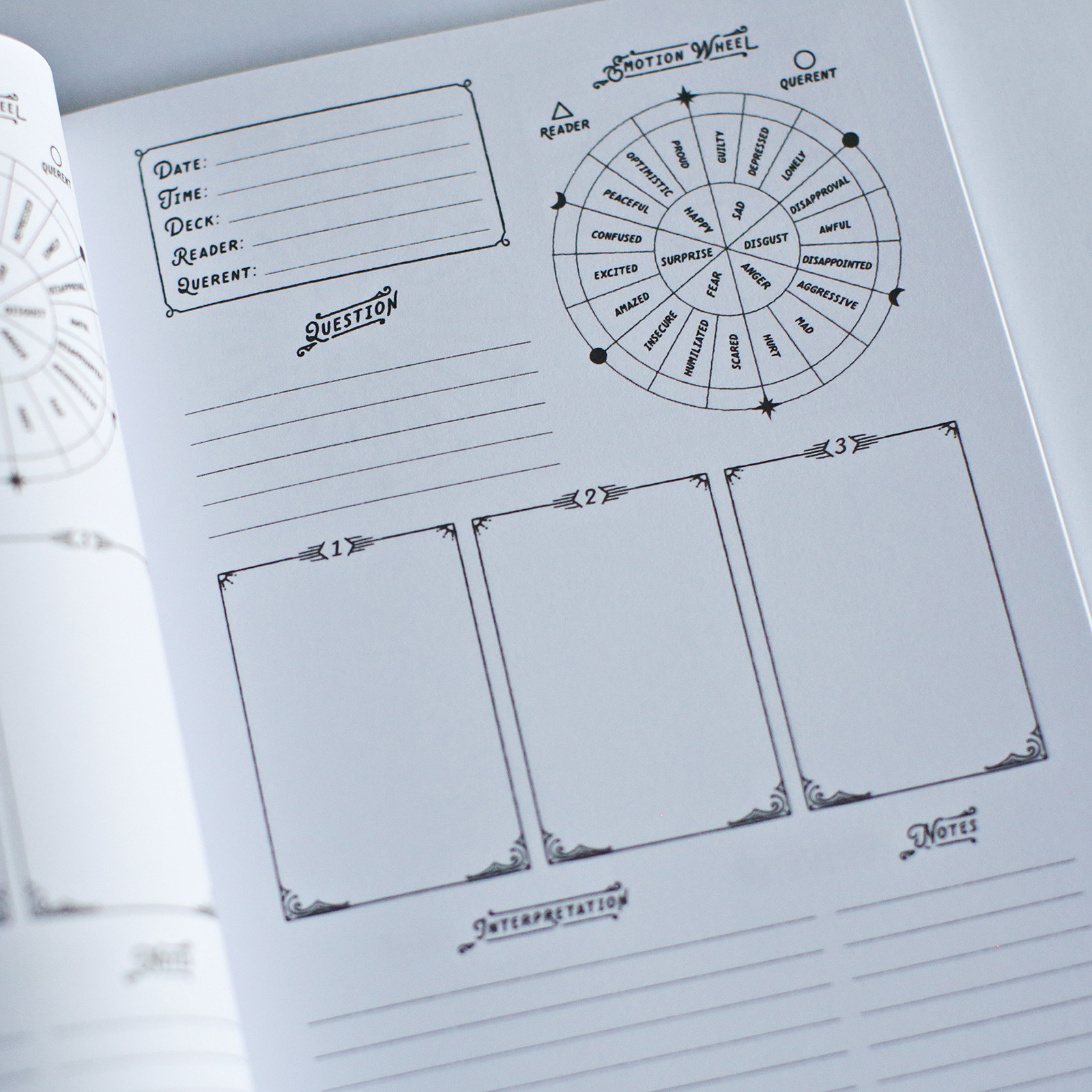 This Tarot Journal has 10 pages for deck information wherein you can log notes on decks you own. Answer what attracted you to these decks, write down your favorite cards and notes on symbols and colors.