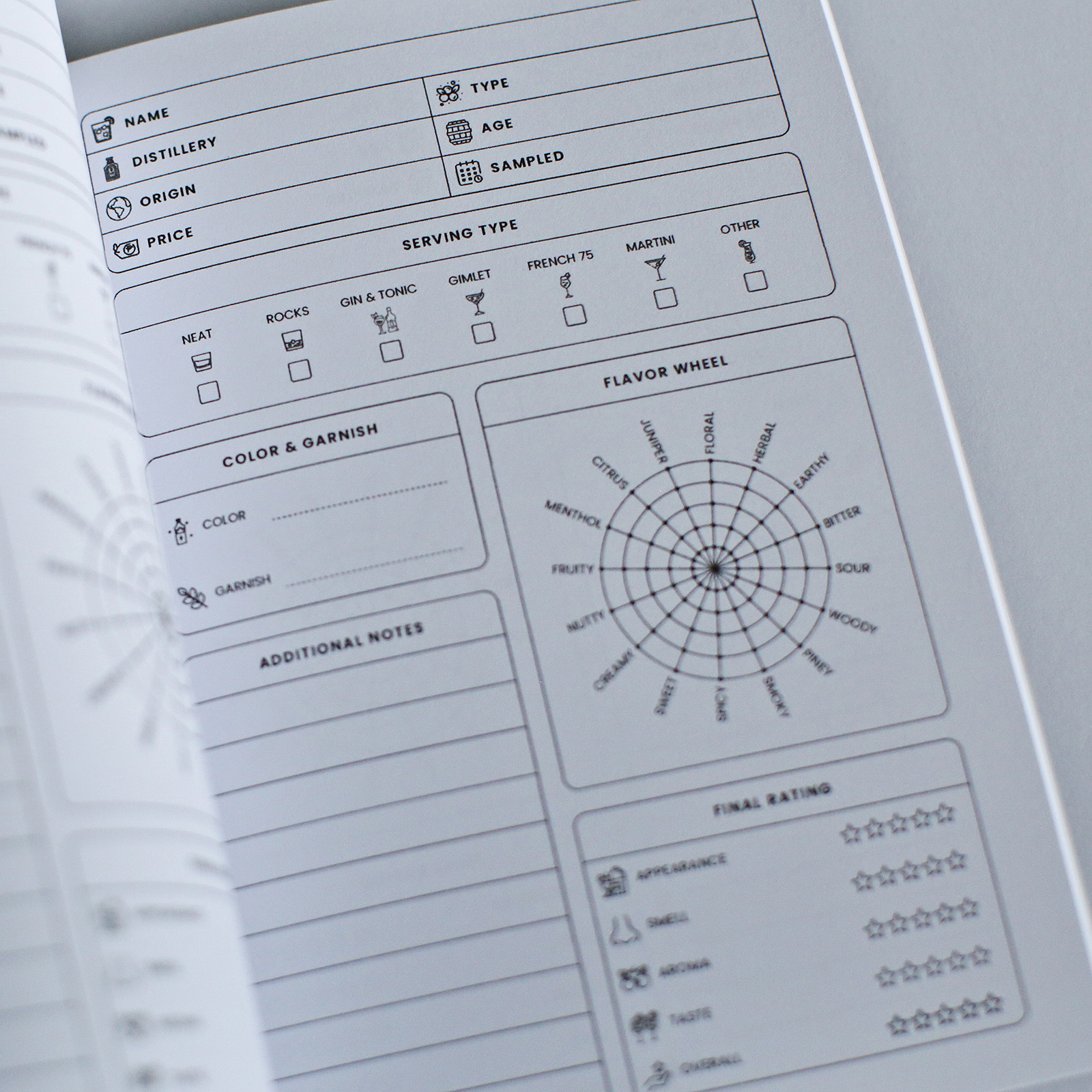 This Ultimate Tasting Journal includes pages for cigar, whiskey, beer, wine, gin and rum. Discover your favorites and learn all the different tasting notes you should be looking out for.